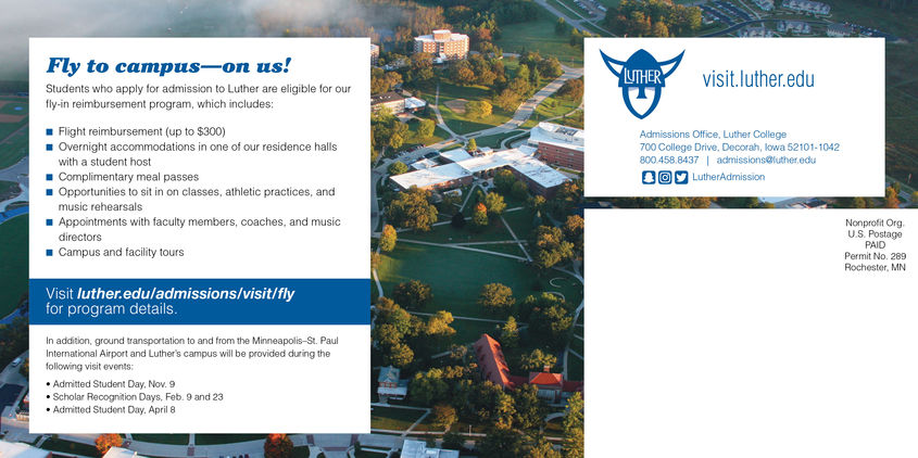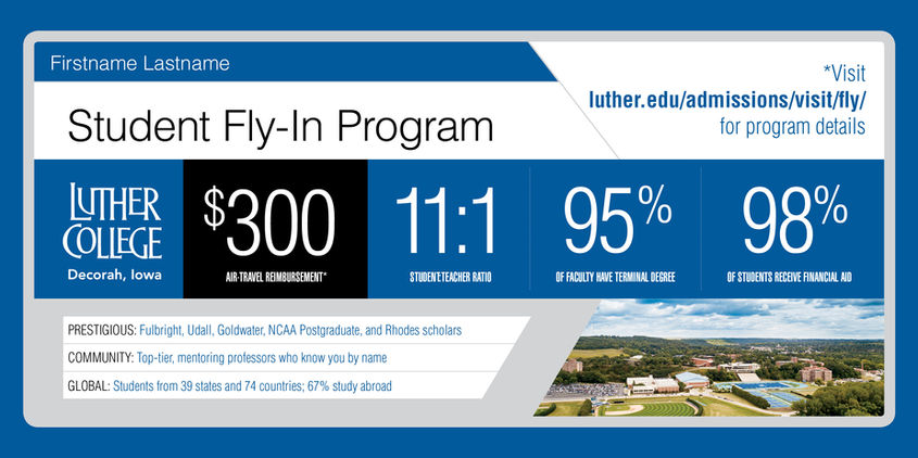 Luther College utilizes postcards for many events that happen on campus. I have worked on high profile events like Christmas at Luther all the way to postcards for admitted education students.